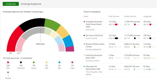 昨日のドイツ総選挙では以下のような議席配分が決まりました(暫定結果)。 ①SPD:28.0%、②CDU/CSU:26.7%、③Green:16.1%、④FDP:12.5% 今回の選挙では、「現在の大連立(CDU/CSU+SPD)にはもうこりごりで、この際思い切った新規蒔き直しをお願いしたい…