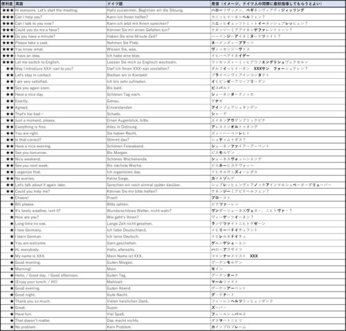 ドイツ人(同僚)との気持ちの距離を縮めるためのミニマムドイツ語表現集を試作してみました。 真正面からドイツ語を勉強するとあまりにも大変過ぎるので、とにかく上から順に丸暗記して、日々の現場でタイミングよく使うことだけを目指していただければと思…