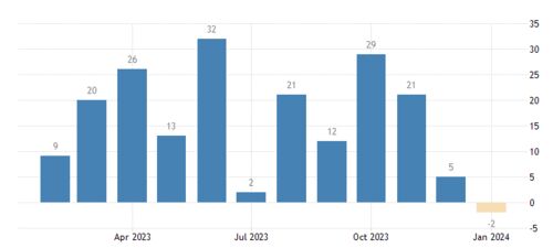 ①実質GDP(2023年通年)~市場の予想通り前年比▲0.3%で着地。但し名目成長は+6.3%(2022年は+7.2%)と非常に高く(高インフレのせいだけで実質ベースでマイナスに転じている)、売上げを落としてよい言い訳にはならない。 https://www.destatis.de/DE/Pre…
