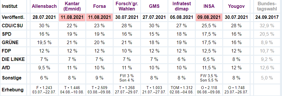 Wahlumfragen zur Bundestagswahl 2021 – Sonntagsfrage (Wahlumfrage, Umfragen) (wahlrecht.de)
