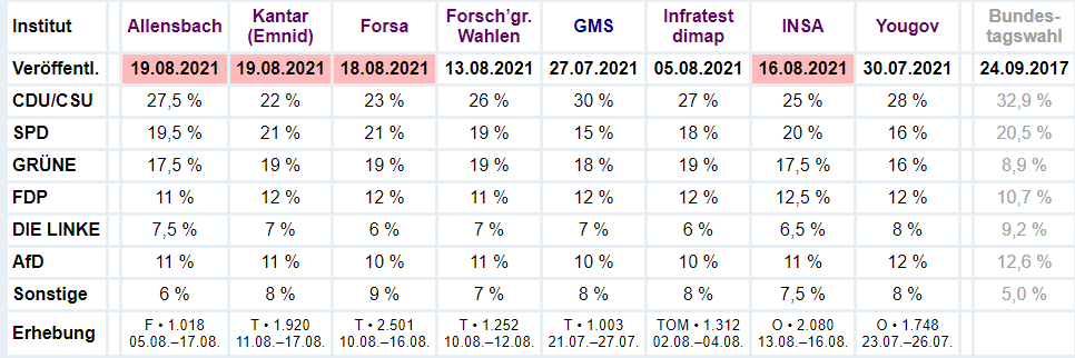 Wahlumfragen zur Bundestagswahl 2021 – Sonntagsfrage (Wahlumfrage, Umfragen) (wahlrecht.de)