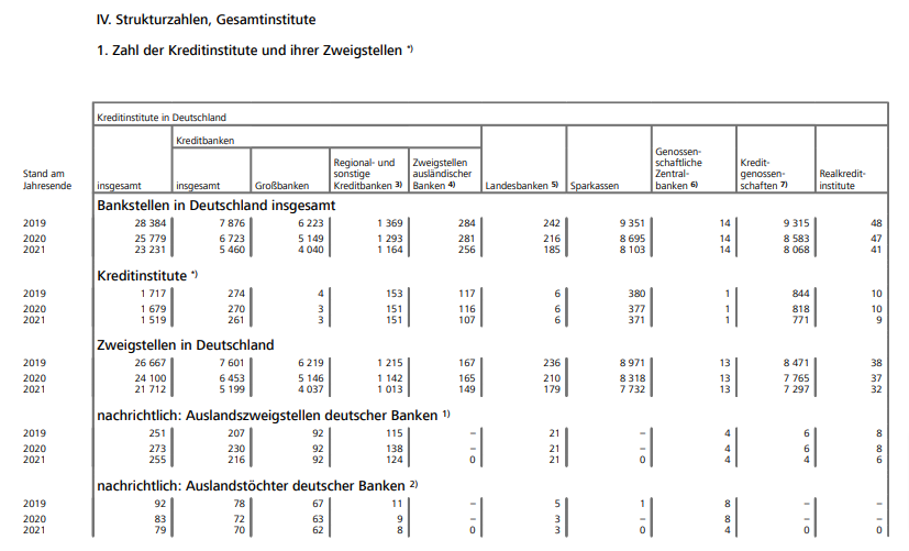 2021年時点で銀行数1,519、支店を含めた事務所数23,231か所(毎年減少中)となっています。