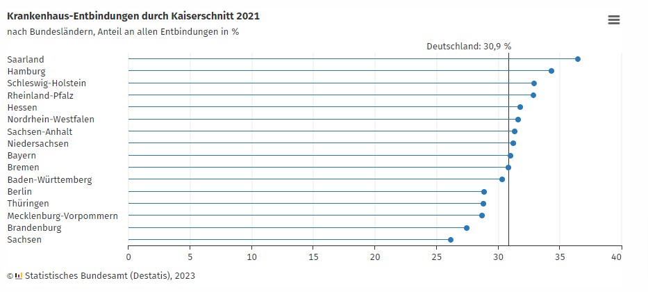 ●2021 年のドイツの帝王切開率は 30.9% で、1991 年の 2 倍 (15.3%) 。