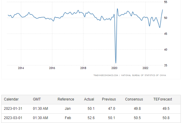 リオープン後にコロナ患者激増で低迷していた中国のPMIが上図の通り最近急回復しており、中国経済の復活⇒世界経済へのサポートという期待が高まっています。