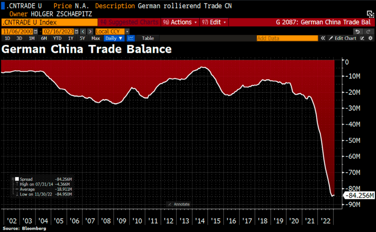 中国経済の回復は、中国で現地生産している一部のドイツ大企業(車、電機、化学)の株価には確かにプラスかも知れませんが、ドイツ経済全体に対するプラスはもはやかなり限定的(資材・エネルギーインフレ再加速ならかえってマイナス)と思います。