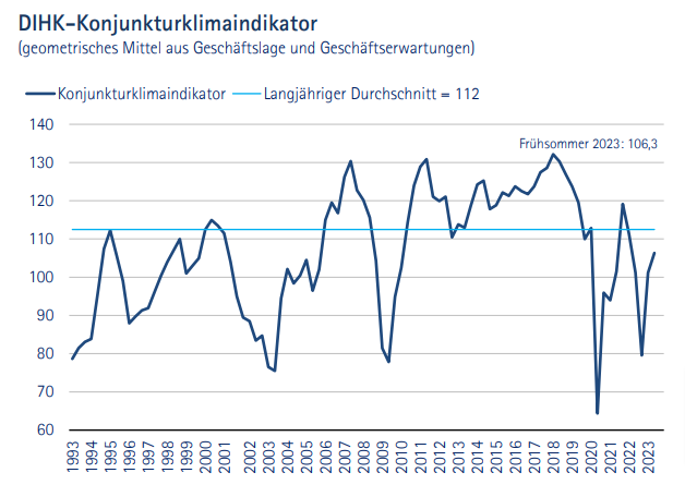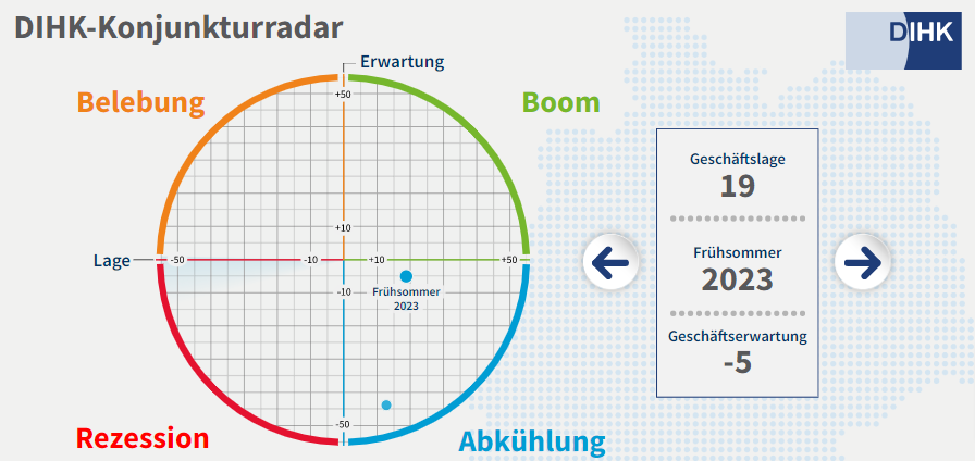 年3回実施されているドイツ商工会議所(DIHK)の景気調査結果(対象:ドイツ国内中小企業21千社)が発表されましたので、使えそうなデータを一通りピックアップしておきます。
