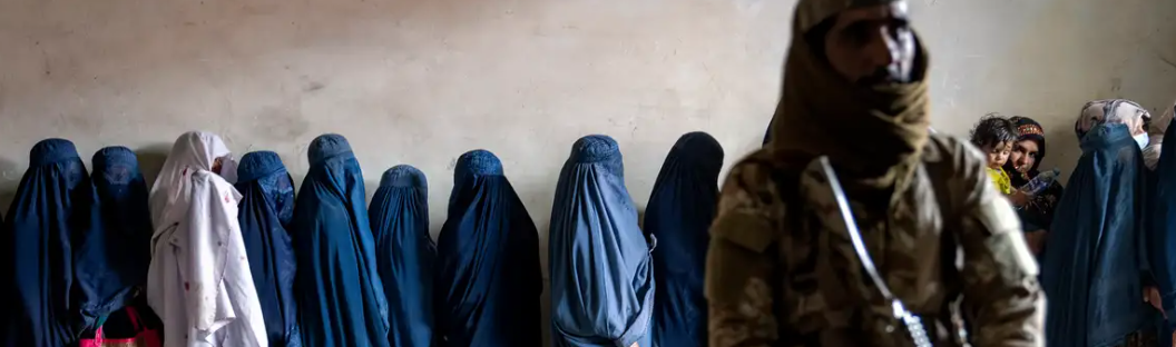 - 女性たちは公の場から追放され、教育機関や労働市場から排除され、移動の自由は著しく制限されている。