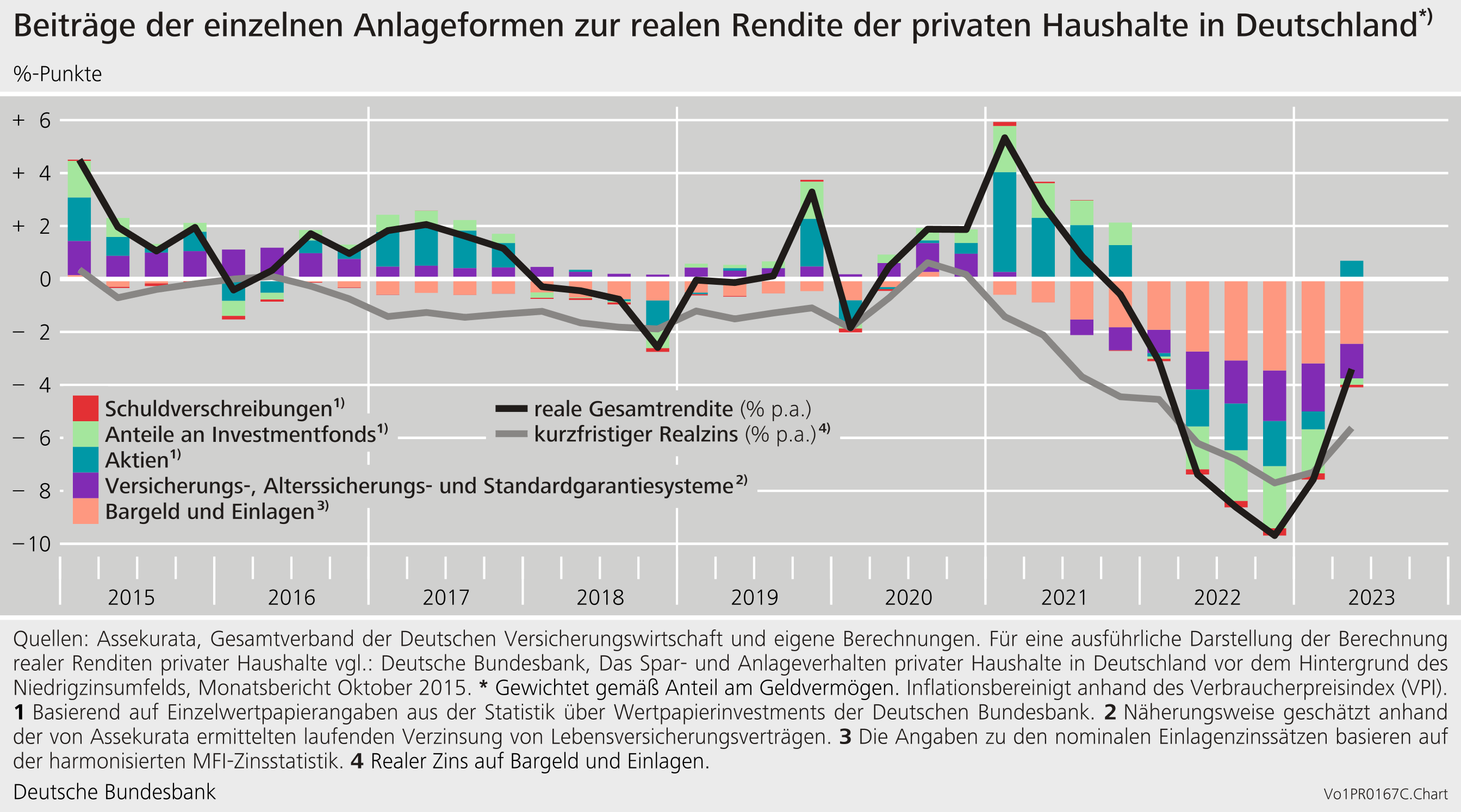 ちなみにインフレ分を差し引いた実質ベースで見ると、ドイツの金融資産は減少(マイナス利回り)が続いています。