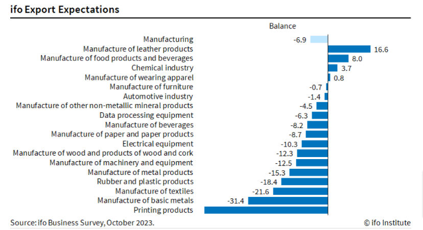 今後の輸出増加の手応えを感じているのは、皮革、食品、化学などほんの一握りの産業セクターだけであり、ifo担当者も「まだまだ厳しい」と評価しています。