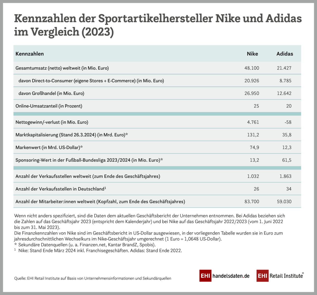Der Deutsche Fußball-Bund (DFB) hat beschlossen, den seit über 70 Jahren bestehenden Ausrüstervertrag für die deutschen Nationalmannschaften mit dem deutschen Unternehmen Adidas zu kündigen und einen Vertrag mit dem US-amerikanischen Unternehmen Nike für die Jahre 2027 bis 2034 abzuschließen. Der kurz vor der diesjährigen Fußball-Europameisterschaft in Deutschland angekündigte Wechsel des in Deutschland führenden Sportartikelherstellers Adidas zu seinem größten Konkurrenten, dem US-amerikanischen Unternehmen Nike, hat im In- und Ausland für Aufsehen gesorgt.