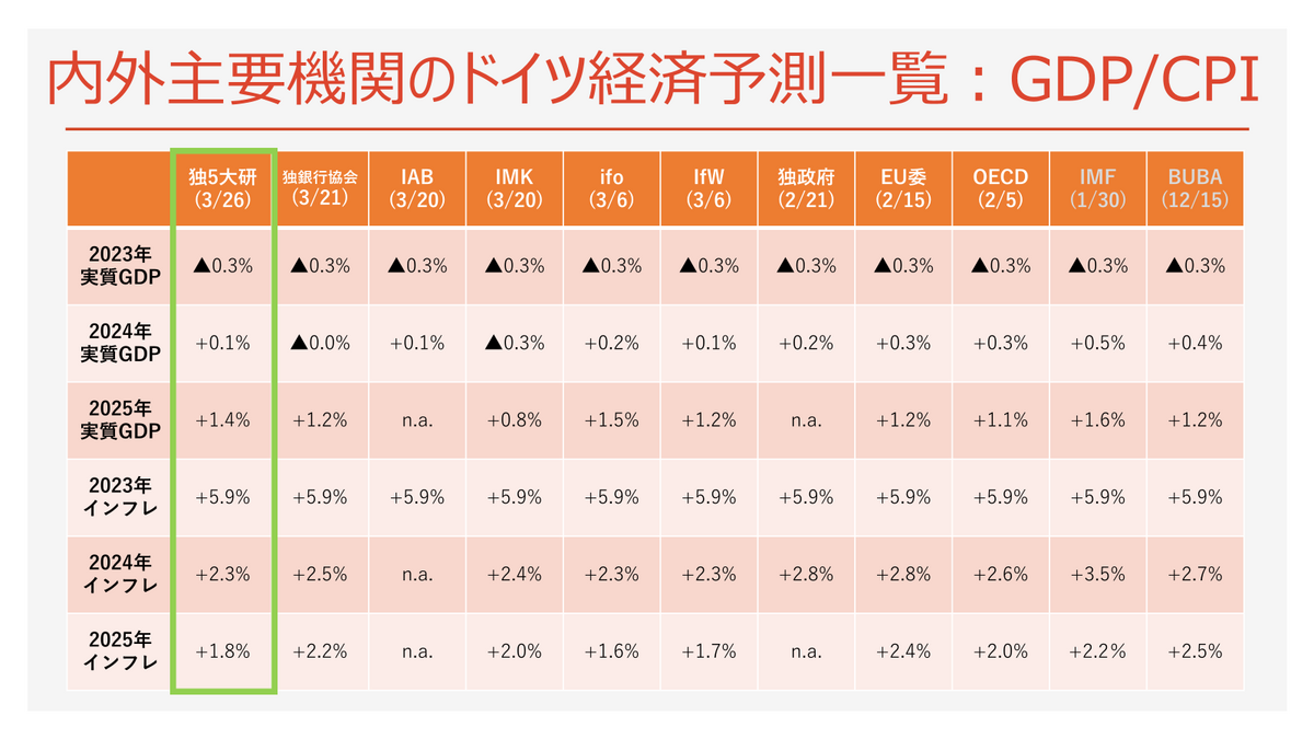 先ほど発表されたドイツ5大研究所の春季合同経済予測のエッセンスは以下の通りです。